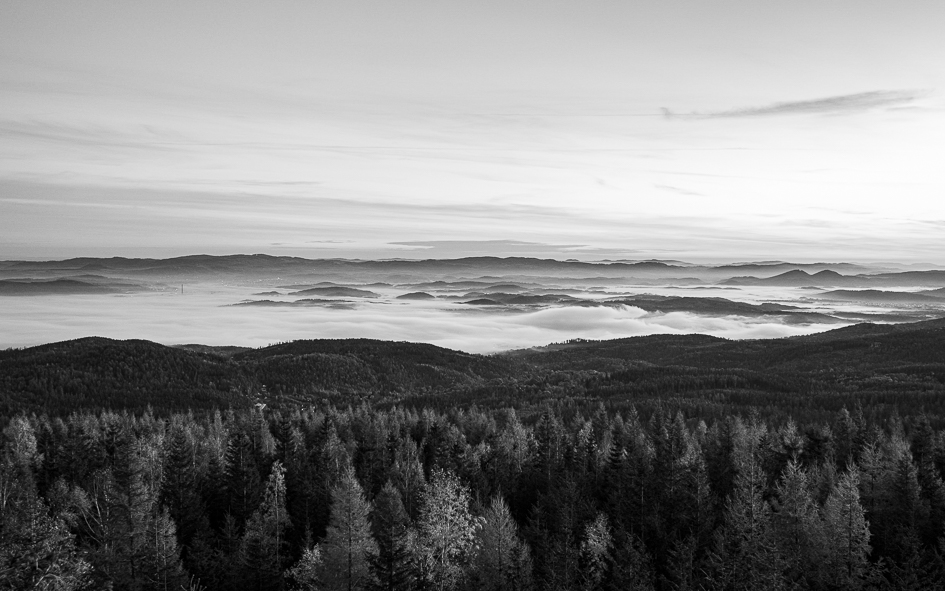 • Early morning in Karkonosze. Autumn mists rise up from Jelenia Góra dale.