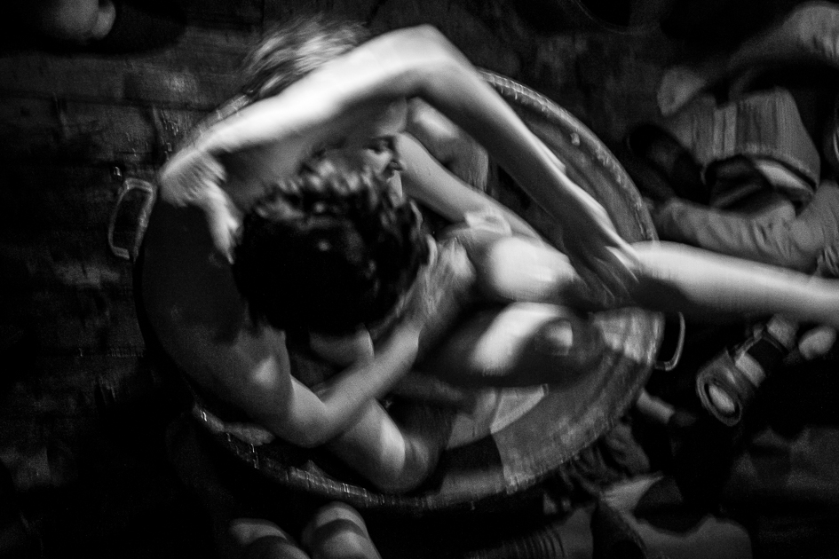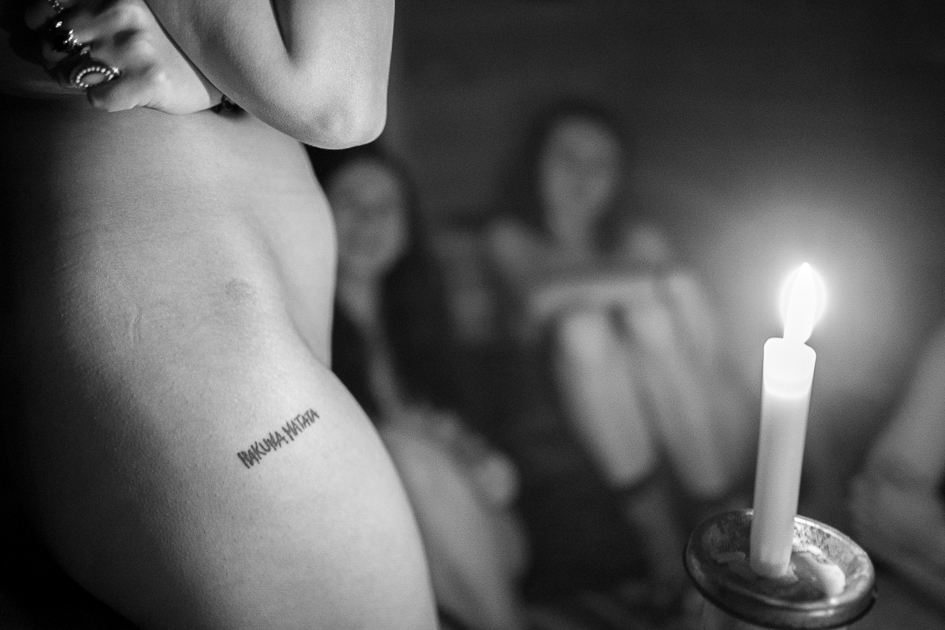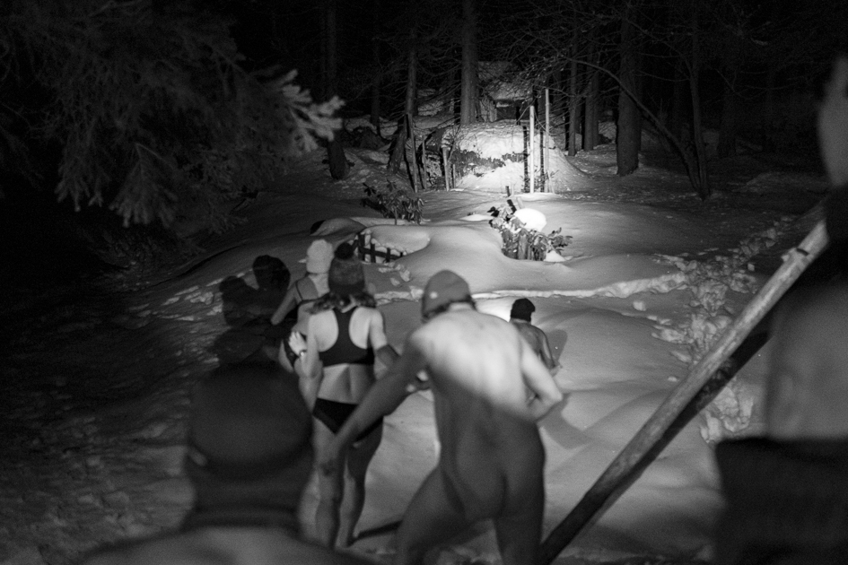 • Elena and Thibeault, international travellers, having a traditional washtub bath. Many people come to The Shack to feel unconstrained and free, which sometimes means open nudity.