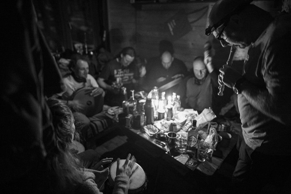 There is a position of Shack Keeper, who stays there permanently. He lives alone in the wild, taking care of the building and getting along with its guests. He’s the unofficial leader within The Shack. The Keeper usually changes every few years. The Shack somewhat changes too, as Keeper’s personality influences the atmosphere.Today most Shack visitors come on weekends to escape civilization and relax for a bit. The flock of guests increased significantly during the pandemic; people tried to compensate for the scarcity of face-to-face contacts. The sense of belonging is built by working and eating together, among strangers. Guests forage wood from the forest and chop it, prepare meals on the wood-fired stove, share them with others by candlelight, play guitar, sing and dance – all without modern disturbances of internet and smartphones. The Shack dwellers want to experience the traditional way of life and stay among nature. Most appear occasionally, but there are always some who visit it regularly and enjoy it together.