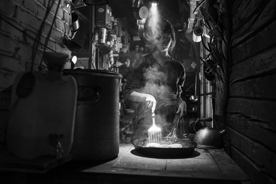 • Majka prepares dinner on a traditional stove. Cooking is a common ritual bringing the dwellers together.